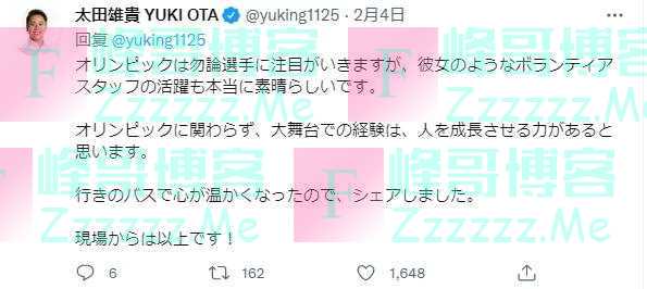 太田接着提到,“奥运选手当然引人瞩目,但像这样的志愿者们也努力活跃在自己的岗位上,并且表现出色。我认为这种工作经验有使人成长的力量。因为感到很温暖,所以给大家分享了这段经历。”