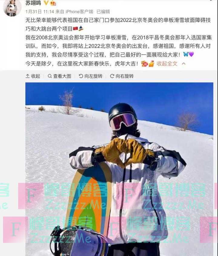 此前,这位天才单板少年在个人社交媒体上表示:“我即将站上2022北京冬奥会的出发台,感谢祖国,感谢所有人对我的支持。我会尽情享受这个过程,把最好的一面展现给大家!”