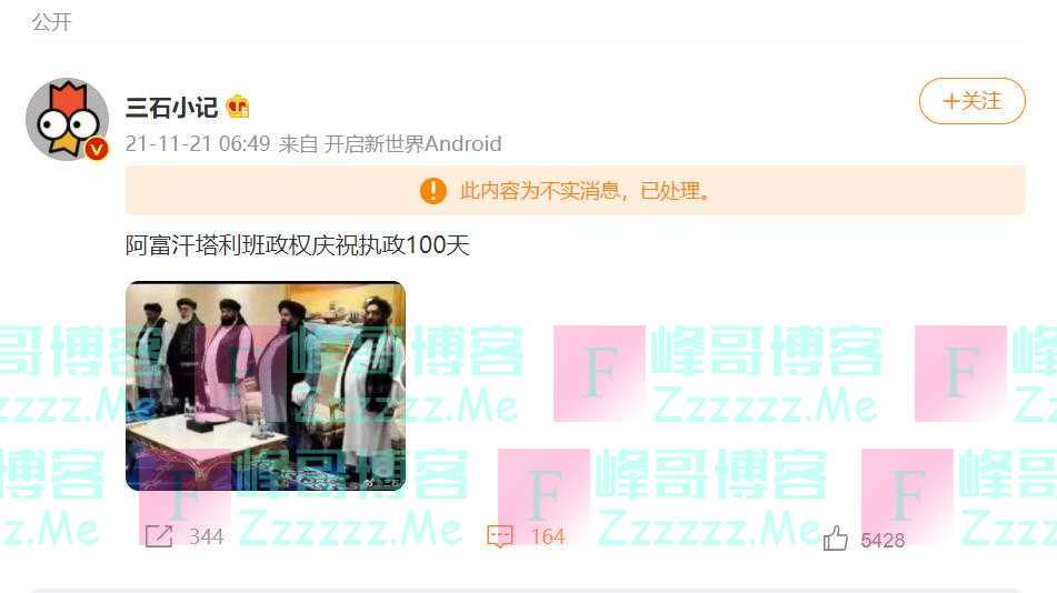 2021年11月,中文网络上流传一张图片,配文称“阿富汗塔利班政权庆祝执政100天”。图片中,五名男性并排站立,裹着头巾、身穿罩袍、大腹便便。此图没有显示“庆祝”的时间、地点以及参与者的身份。而颇为显著的是,图中疑似“塔利班高官”的男子们,腹部都很突出,似在暗示兵不血刃控制喀布尔夺取政权的塔利班,在城里乐不思蜀了。