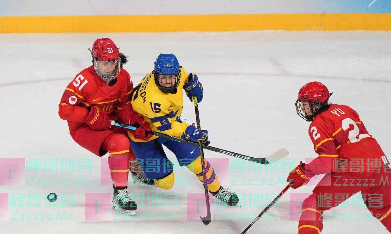 当日,在五棵松体育中心举行的北京2022年冬奥会女子冰球小组赛中,中国队以1比2不敌瑞典队。