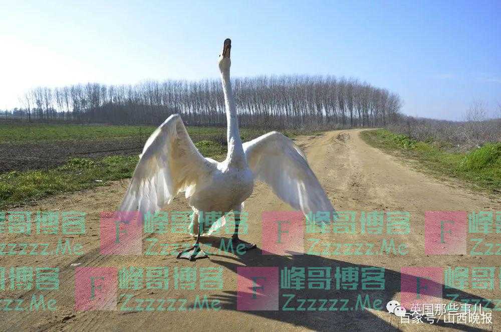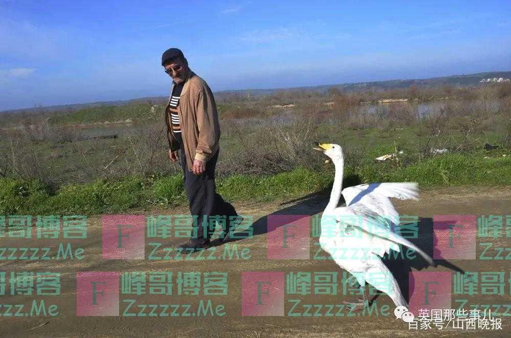 无论大叔在农场做农活,还是出门散步,你总能在他身边看到一只天鹅。