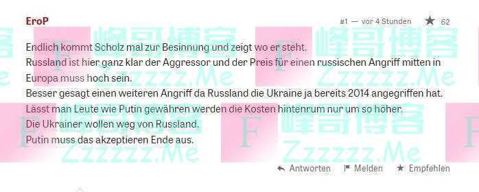 延伸阅读:自俄乌危机发酵以来,德国始终因不愿放弃北溪2号并拒绝向乌克兰提供军事支持而备受西方媒体及乌克兰方面的批评,甚至被称作“西方的叛徒”和北约阵营“最薄弱的环节”。