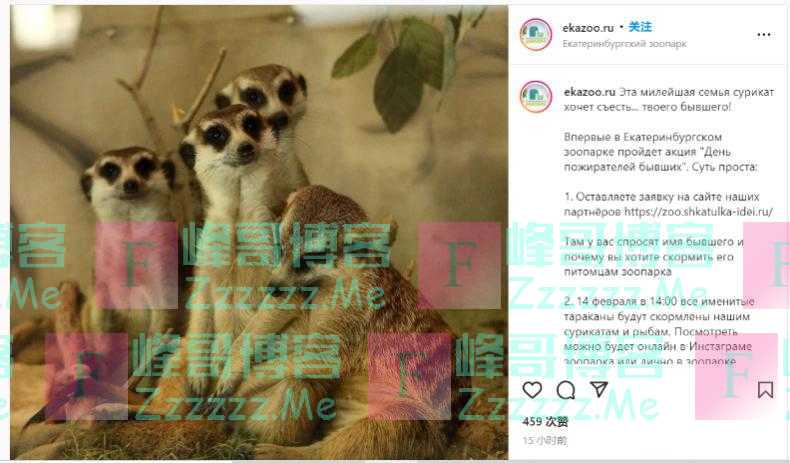 俄动物园情人节独特庆祝活动:给蟑螂起前任名字,然后喂狐獴和鱼》发布于2022-2-13