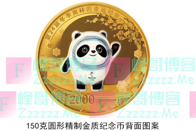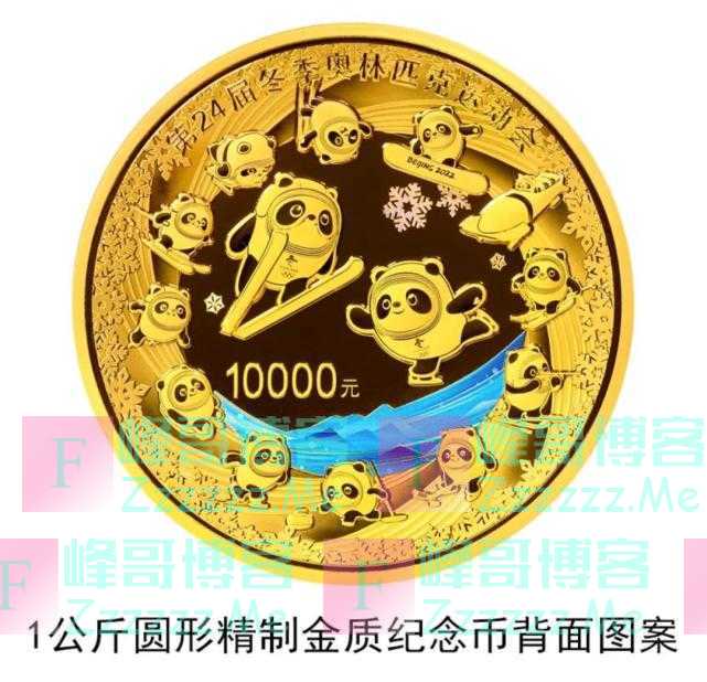 1公斤圆形金质纪念币背面图案也是吉祥物“冰墩墩”造型,衬以核心图形、雪花等元素组合设计,并刊“第24届冬季奥林匹克运动会”字样及面额。