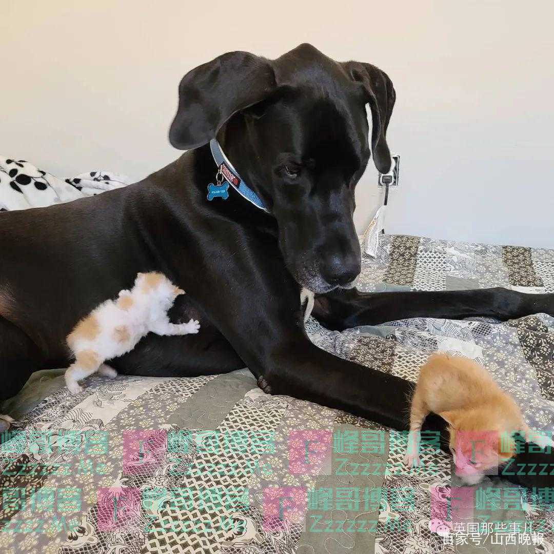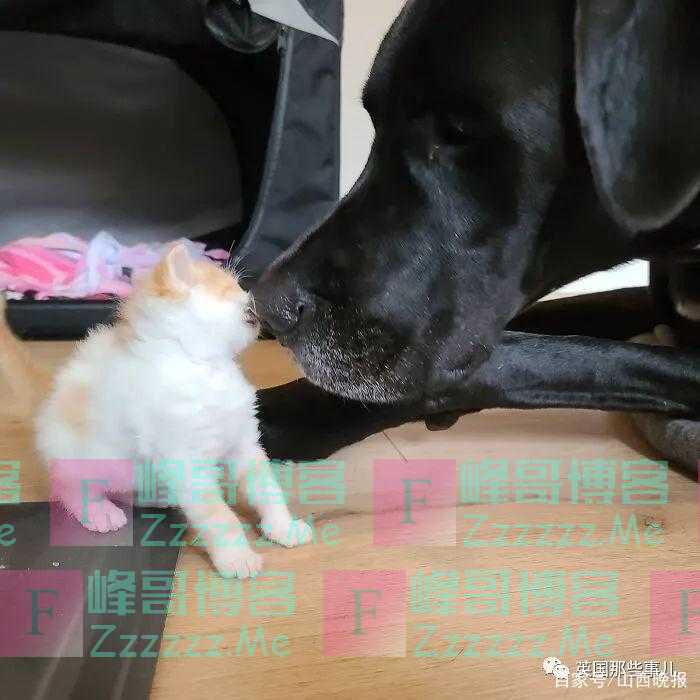 温柔大丹犬照顾小奶喵,这体型差,简直太有爱啦》发布于2022-2-16