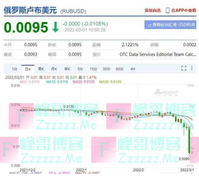 而另一方面,更令人震惊的是卢布兑美元突然崩了:卢布兑美元离岸汇率一度大跌近30%!