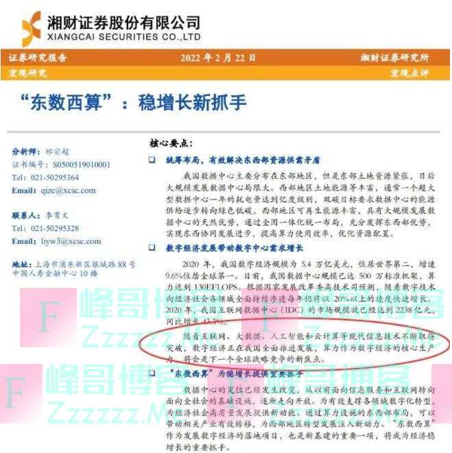 湘财证券在2月22日的研报中指出:“随着互联网、大数据、人工智能和云计算等现代信息技术不断取得突破,数字经济正在我国全面推进发展,算力作为数字经济的核心生产力,将会是下一个全球战略竞争的新焦点。”