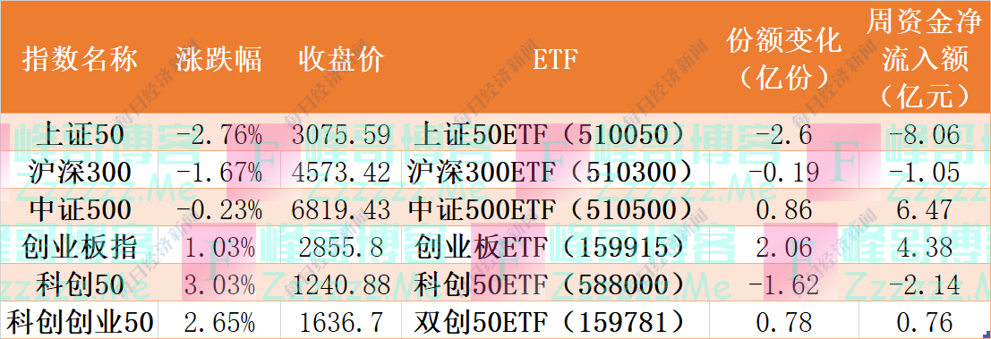 整体看来,本周市场表现分化,但资金多处于观望状态,以区间成交均价计算,6只指数ETF本周合计净流入约0.36亿元,其中上证50ETF净流出8.06亿元,中证500ETF净流入6.47亿元。