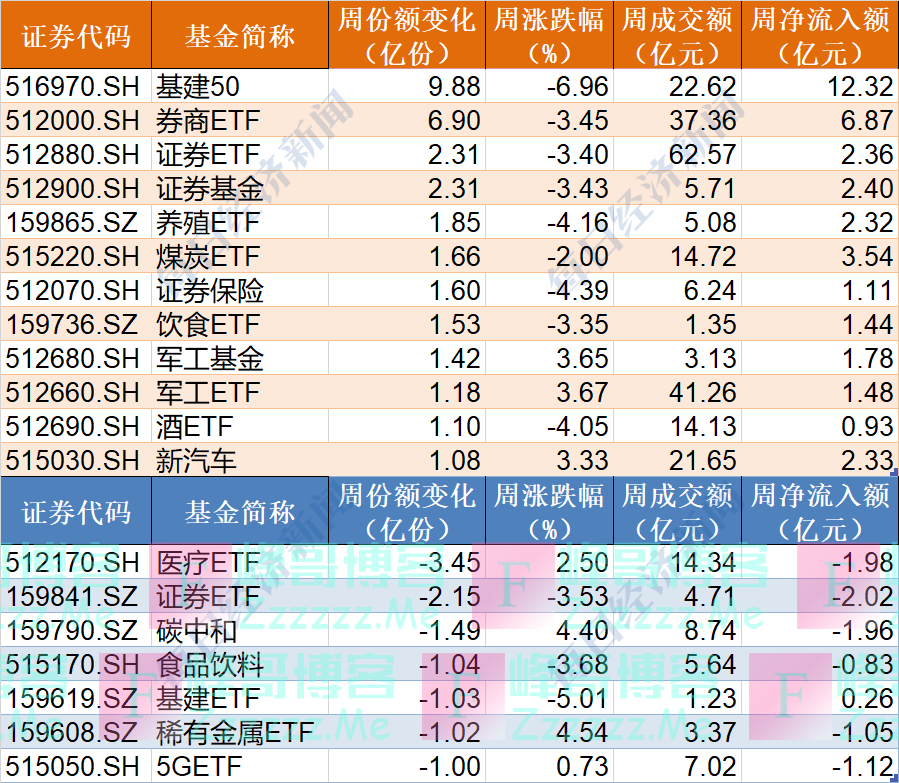 值得注意的是,本周跌幅较大的基建和证券相关ETF获得了资金大幅抄底,而连涨2周的医疗ETF,持续被资金抛售。