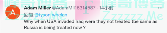 还有人想起来:“为什么美国入侵伊拉克时,他们没有受到俄罗斯现在所受到的待遇?”↓