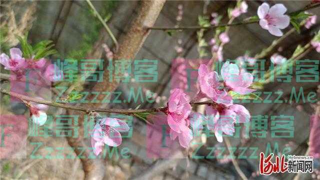 大河的春岸是白沟的高山,二月的山脚羞红着粉嫩的容颜。