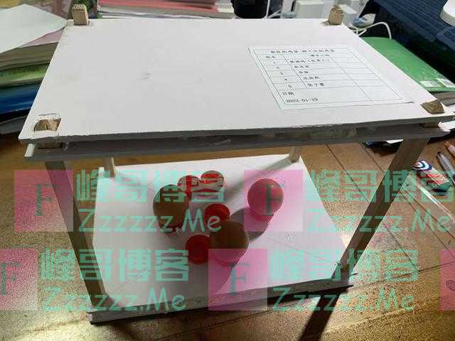 初一一班靳涛鸣和小组同学则在“踩不烂的鸡蛋”花了不少心思。他们选用PVC板、泡沫胶、木棍、塑料瓶盖等工具制成一个可以支撑鸡蛋用来承重的装置,融入了数学、物理等多个学科知识,有些尚未学到的知识,他们就从网上搜索自学。经过多次实验,他们最终制作出的“成品”能承重近40斤。