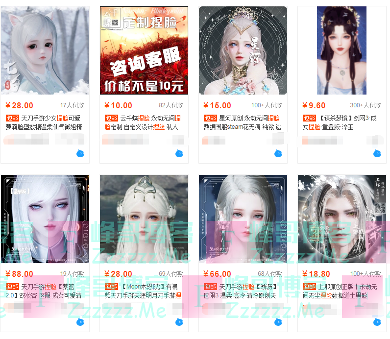 虽然游戏本体也提供一些默认模板供玩家使用,但随着用户个性化和差异化需求不断提高,一个有着专业审美的捏脸师就有了市场。当前网络上有成型批量出售的虚拟角色捏脸数据包,价格在几元到几十元不等,同时也有个性化定制的服务,价格弹性差距较大,一张难度很高的“脸”可能要价至上百上千元不等。