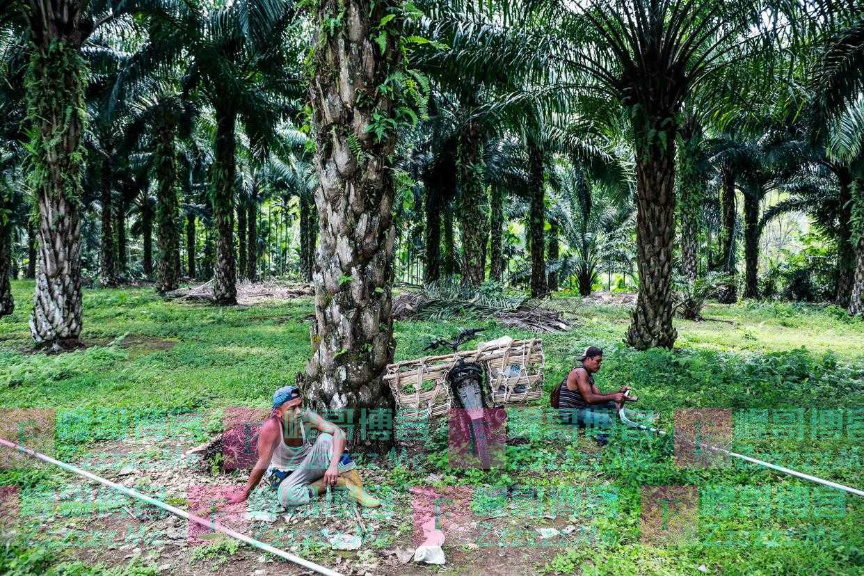 3月15日,采摘棕榈果实的工人们在印度尼西亚北苏门答腊的一个棕榈园休息。新华社/欧新