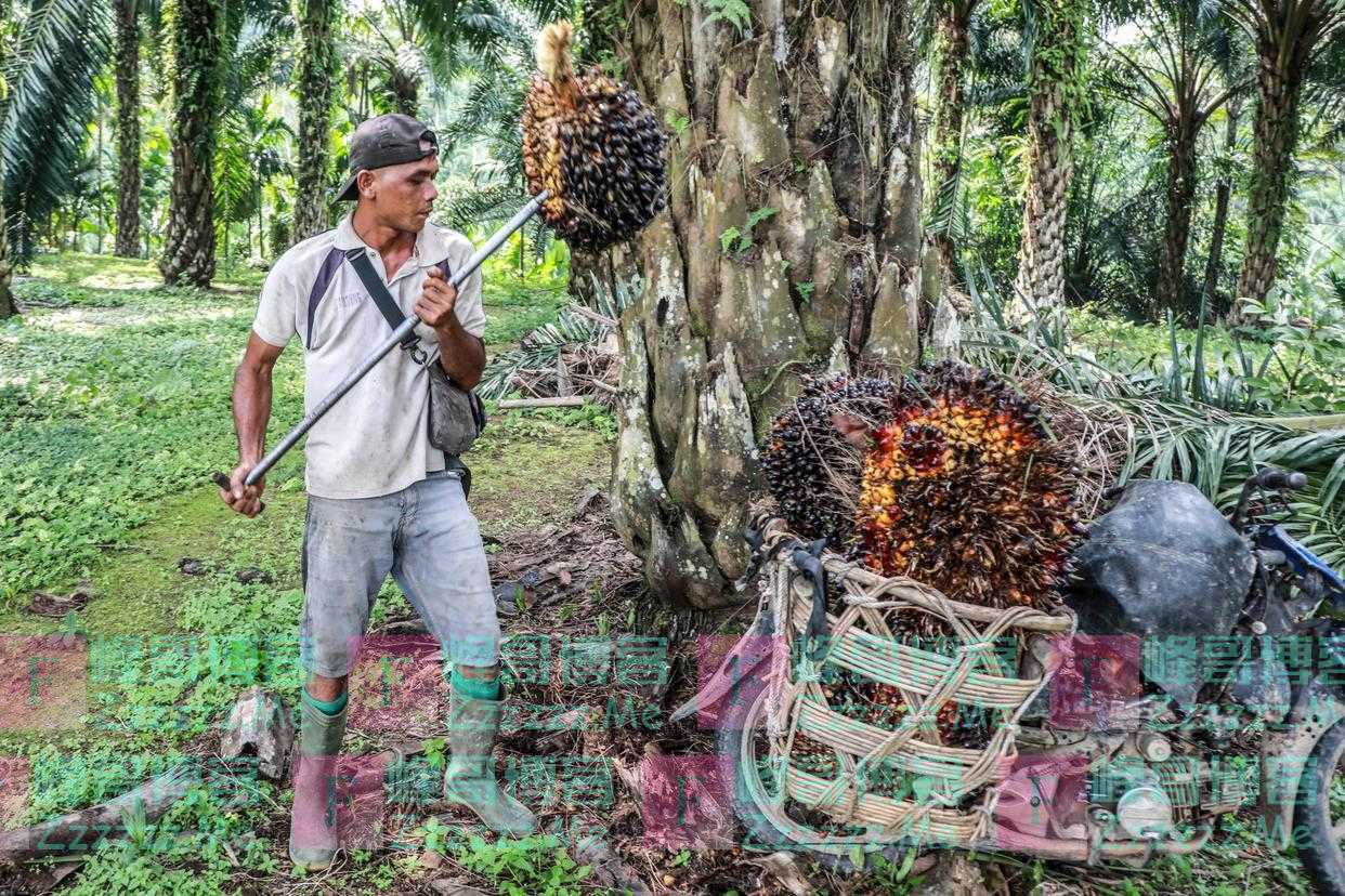 3月15日,工人在印度尼西亚北苏门答腊的一个棕榈园采摘棕榈果实。新华社/欧新