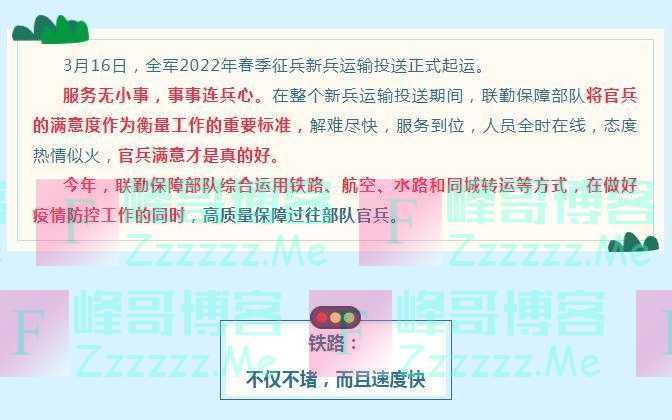 联勤保障部队全力做好2022年春季征兵新兵运输投送工作》发布于2022-3-20