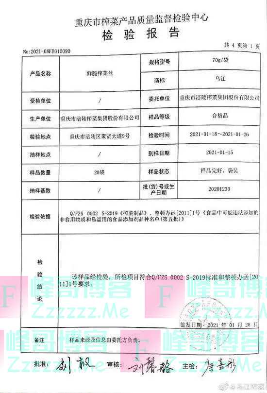 入选“不推荐产品”?乌江榨菜回应了》发布于2022-3-21