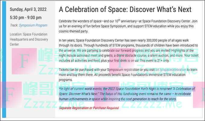 在今年的会议议程中,太空基金会将于4月3日举办一场名为“尤里之夜”的筹款活动。但是这场活动的名字却在近日改为了“太空庆典:探索未来”,删除了加加林的名字。