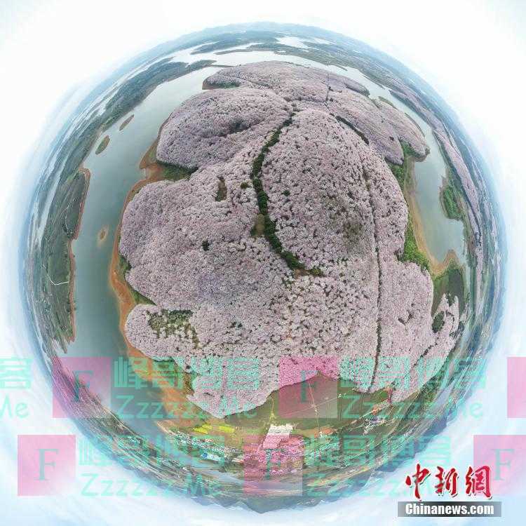 本文转自【中国新闻网】; 3月18日,航拍贵安新区万亩樱花园(合成球形图)。近日,贵州贵安新区万亩樱花园内的樱花绽放,吸引游客和市民前去观赏、拍照。中新社记者 瞿宏伦 摄