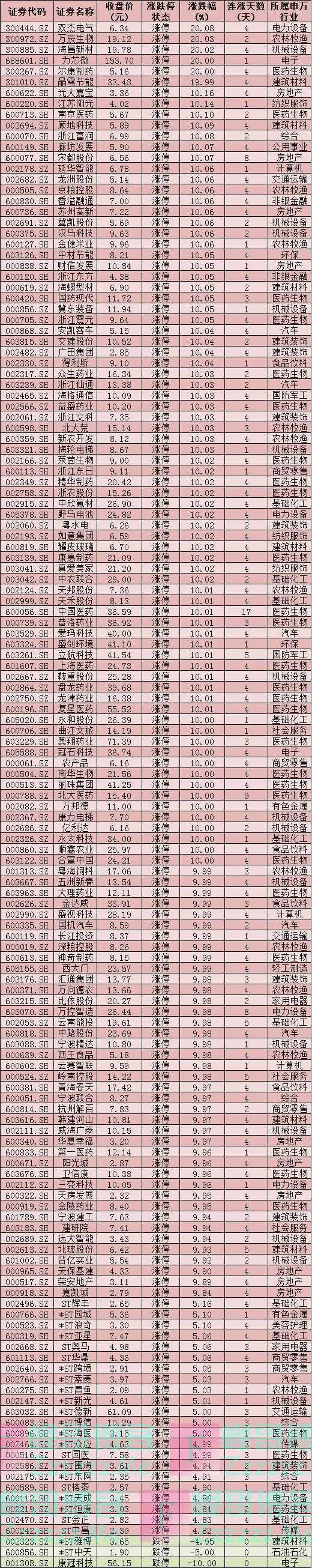 个股方面,周一,29只医药股批量涨停。尔康制药20CM涨停,另外,包括南京医药、国药现代、浙江震元、众生药业、益盛药业、莱茵生物、精华制药、浙农股份、中国医药、普洛药业、上海医药等个股也相继涨停。