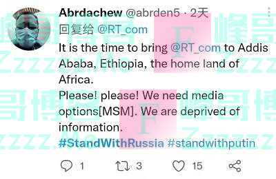 一位受不了西方媒体虚伪和双标说辞的埃塞网友呼吁俄罗斯媒体增强在非洲的存在,因为西方媒体“剥夺”了他们的信息获取。