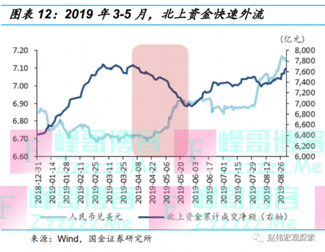 2019年3-5月,出于对贸易战下中美脱钩的担忧,外资在春季躁动中大幅流出。随后,人民币阶段性企稳后再度贬值。2019年3-5月,中美多轮经贸高级别磋商并未取得显著成果,反而中美双双提高关税税率。区别于2018年10月时摩擦在未来两月中快速缓和,此次在多轮谈判不顺后,市场对中美“脱钩”的担忧显著升温。2019年3月6日-5月31日,北上资金累计流出780亿元,人民币兑美元也大幅贬值3.0%。中美脱钩担忧对市场情绪的主导下,人民币的贬值一直延续到2019年10月,直至10月11日第13轮经贸磋商平复市场担忧。