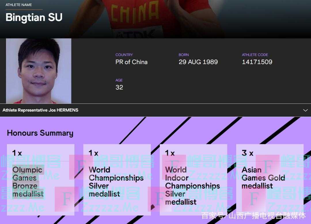 3月21日,国际田联官网更新“中国飞人”苏炳添的简介——“奥运会铜牌获得者”。这意味着,中国接力队正式递补获得东京奥运会男子4x100米接力铜牌!