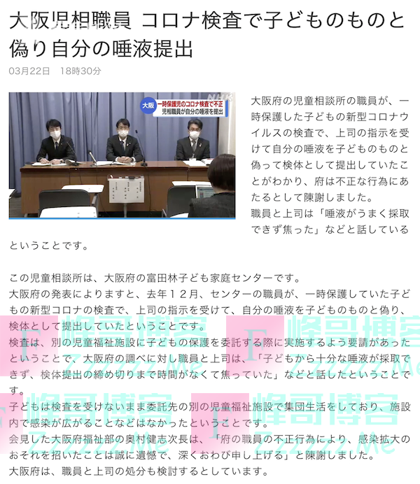 员工用自己唾液当成儿童的测新冠 日本大阪道歉》发布于2022-3-25