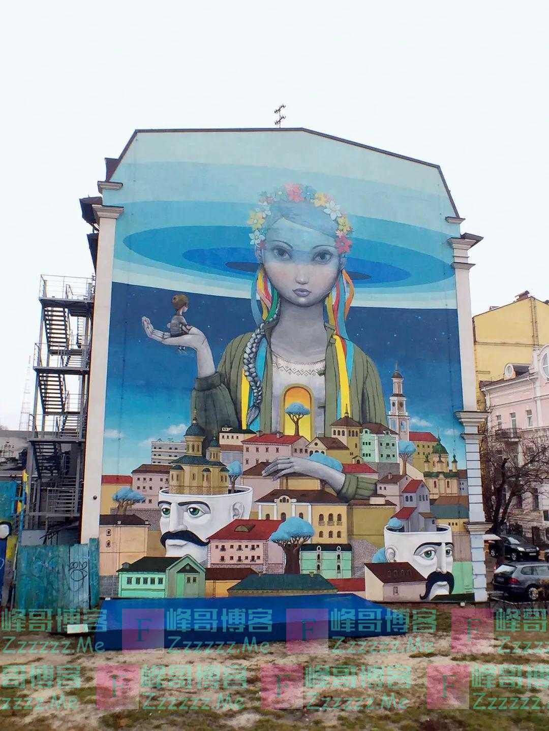 基辅这座城市,最不缺的可能就是艺术。艺术的气息流淌在城市各处,七彩颜色的建筑物,“搞钱,不要搞艺术”的商店标牌,还有好几公里沿街铺满的油画市场。城市建筑的墙面壁画涂鸦也是一大亮点,不是那种不良青年的随手乱画,是整面墙整面墙的完整壁画。基辅算得上是东欧街头壁画最多的城市之一,全城大约有160幅巨型作品。背靠背身穿黄蓝两色(乌克兰国旗颜色)上衣、手臂紧锁的兄弟,头戴黄蓝两色绸带、怀抱部分被摧毁的城市、象征“复活”与“希望”的悲悯少女,手持乌克兰护照的克里米亚小姑娘,徒手捏断利剑的双手,都是著名的作品。