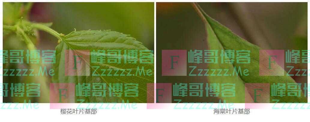 总结:无花看叶片:先花后叶是樱花,花叶同放是海棠。双保险看叶基部:樱花叶基两腺点,海棠叶基则没有。