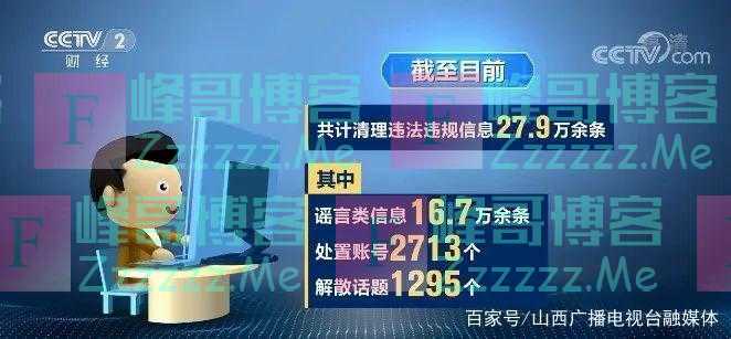 截至目前,共计清理违法违规信息27.9万余条,其中谣言类信息16.7万余条,处置账号2713个,解散话题1295个。