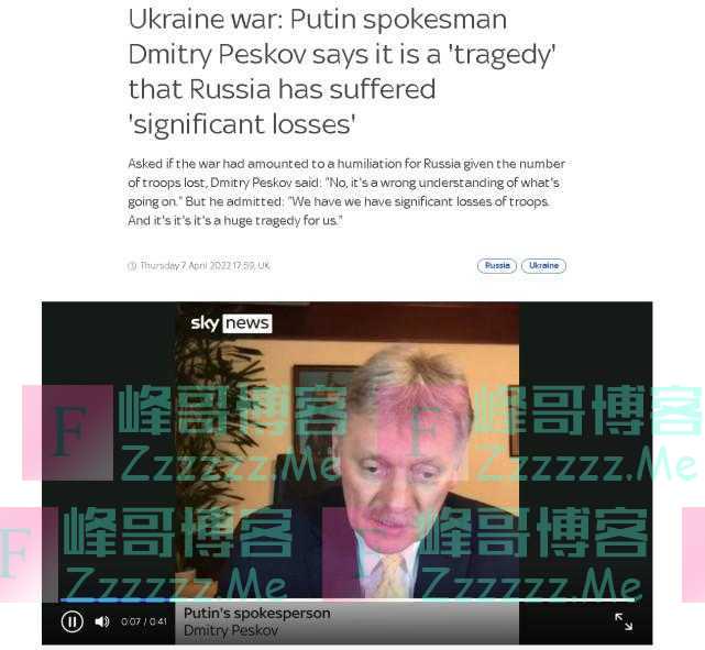 俄罗斯总统发言人:俄军遭受了重大损失》发布于2022-4-8