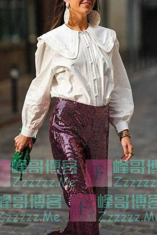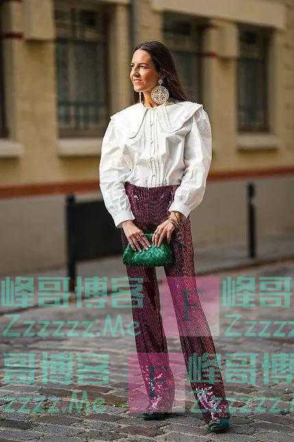 时尚博主Alba Garavito Torre提供了通过衬衫优化头肩比的小窍门,那就是给衬衫加一片挺阔的荷叶领,俏皮可爱又精致和优雅。