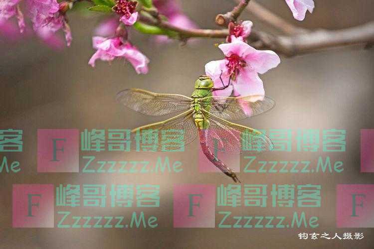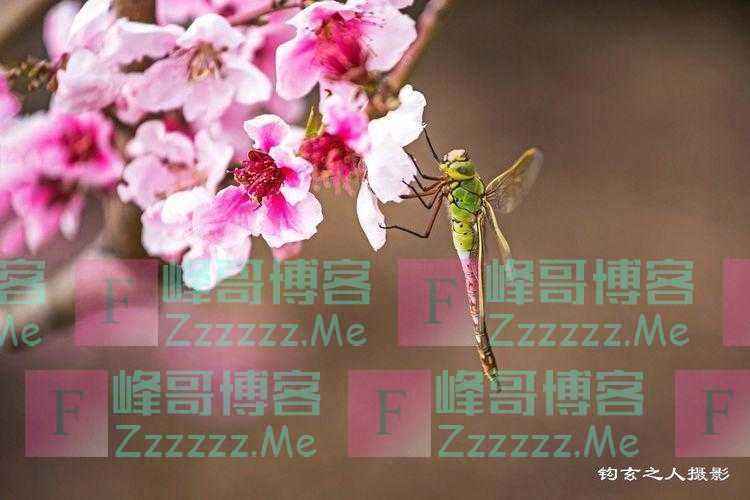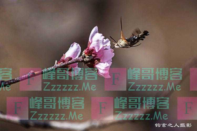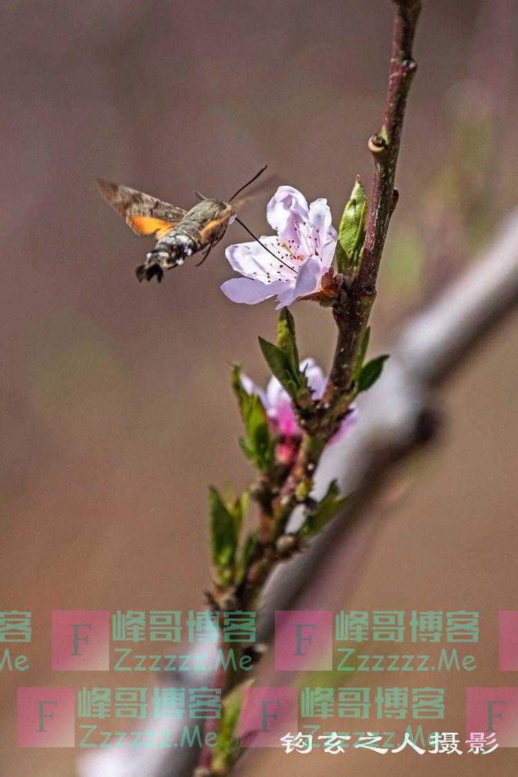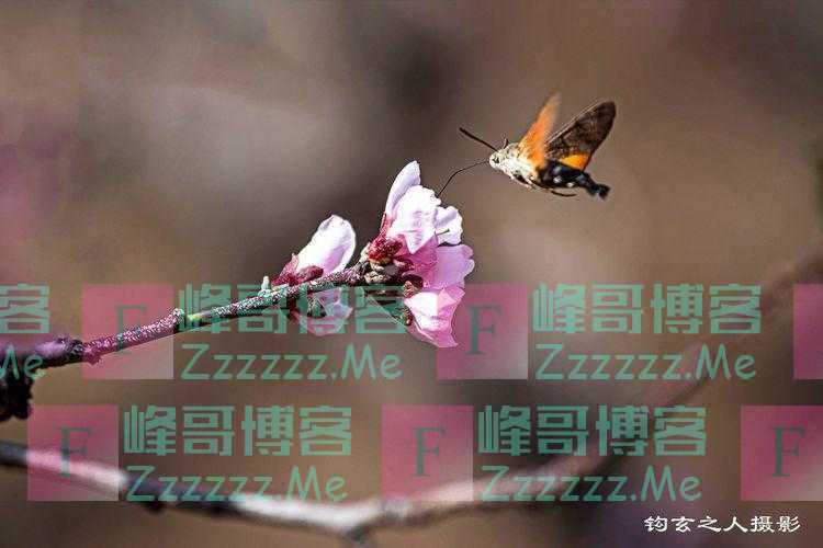 满树桃花馥郁香,蜂鸟鹰蛾采花忙。