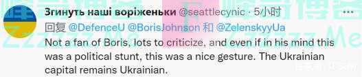 一名头像画着乌克兰国旗色的网友称,“我不是鲍里斯的粉丝,他有很多需要批评之处,即使在他看来这是一个政治噱头,这也是一个友好的姿态。乌克兰首都仍然是乌克兰的。”↓