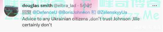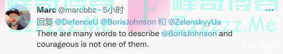 一名来自英国曼彻斯特的网友还对乌克兰国防部的用词表达不满,“有很多词可以形容鲍里斯·约翰逊,但勇敢不是其中之一。”↓
