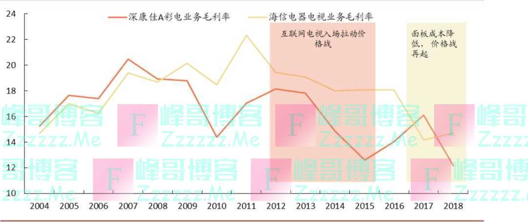 反倒是作为制造业微笑曲线的底部,对于电视厂商来说,上游面板涨价带来波动才是最为致命的。以海信为例,根据平安证券2018年发布的家电行业数据显示,家电企业品牌的毛利率往往和上游面板价格呈现直接负相关反馈。