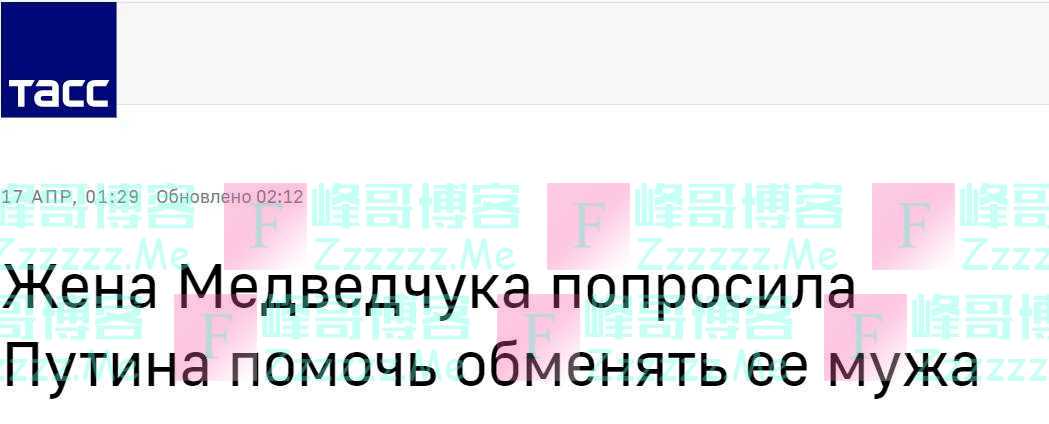 塔斯社:梅德韦丘克妻子请求普京帮助用自己丈夫进行交换