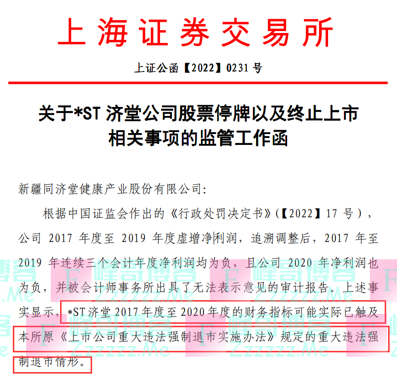 除了前述6家已经确定退市的公司外,*ST济堂也面临退市风险。*ST济堂在4月11日收到上交所的监管工作函,要求4月12日开始停牌,称其可能已经触及重大违法强制退市情形。