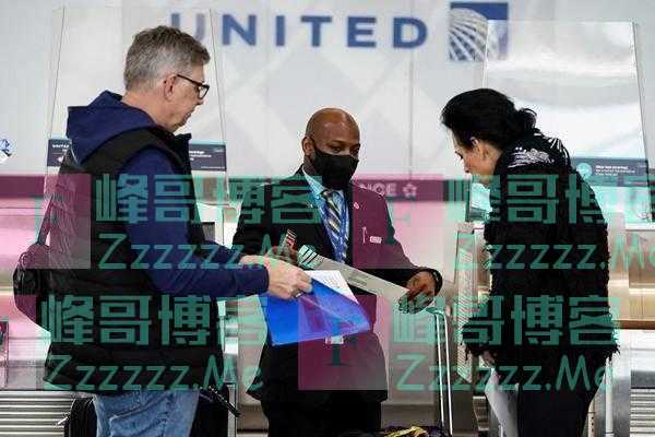 4月19日,在美国弗吉尼亚州阿灵顿的里根国家机场,两名未戴口罩的旅客在值机柜台办理手续。(新华社)