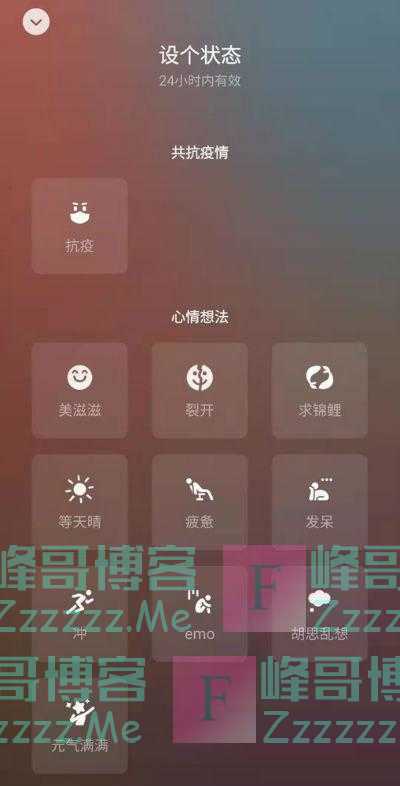 首先进入“个人主页”设置状态页面,然后我们随便选择一个状态,点击表情图标。