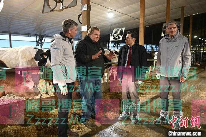 当地时间4月20日,中国驻美大使秦刚参访艾奥瓦州阿纳莫萨小镇一处牧场。 中新社记者 陈孟统 摄