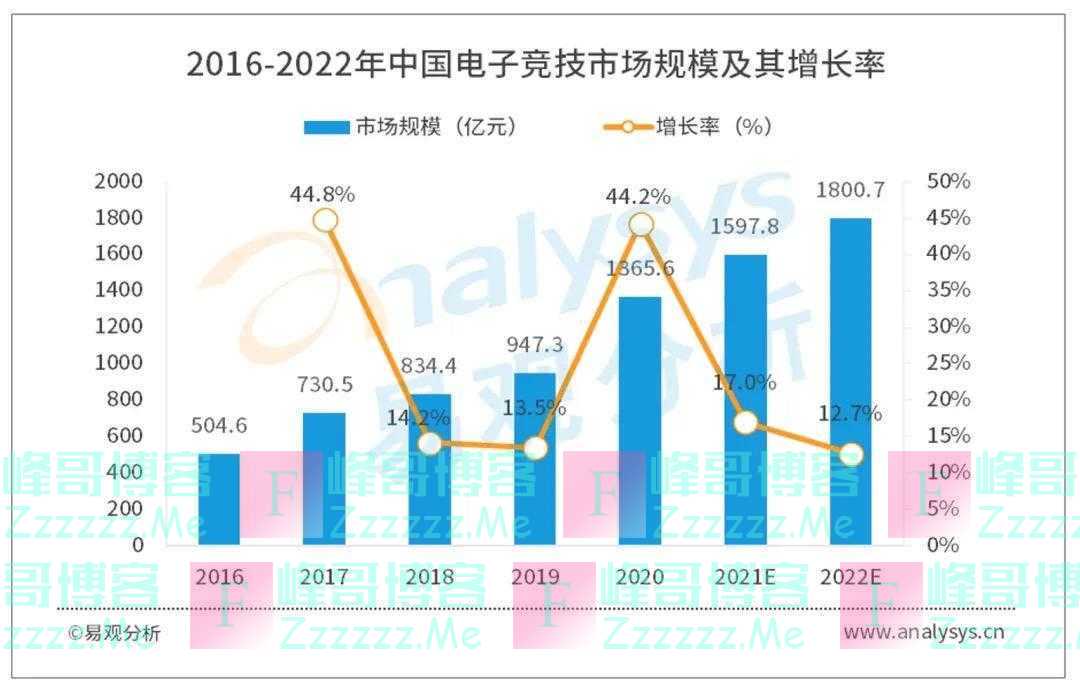 易观分析数据显示,2020年我国电竞市场规模达1365.6亿,预计在2022年达1800.7亿,年复合增长率为19.9%,市场规模保持稳定增长。受疫情的影响,用户居家生活时间增多,强娱乐强竞技属性的电子竞技快速占领用户心智,加快用户养成线上观看电竞赛事习惯;后疫情阶段,随着经济复苏及广告旺季的到来,电子竞技市场规模将继续持续稳定的增长。