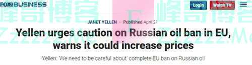 另据美国福克斯商业频道4月21日报道,近日,美国财政部长珍妮特·耶伦(Janet Yellen)质疑欧洲禁止进口俄罗斯石油和天然气的有效性,她警告说,这可能会给美国及其西方盟友带来意想不到的经济后果。
