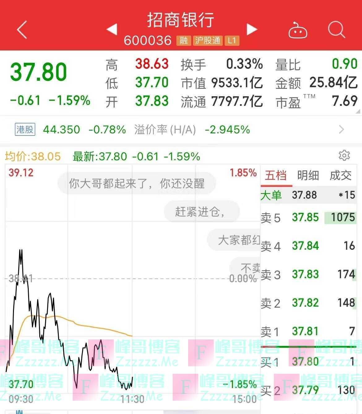 近三个交易日,招行股价连续下跌,市值也跌破万亿。截至今日(4月27日)午间收盘,招商银行股价37.80元,跌1.59%,市值9533.1亿。