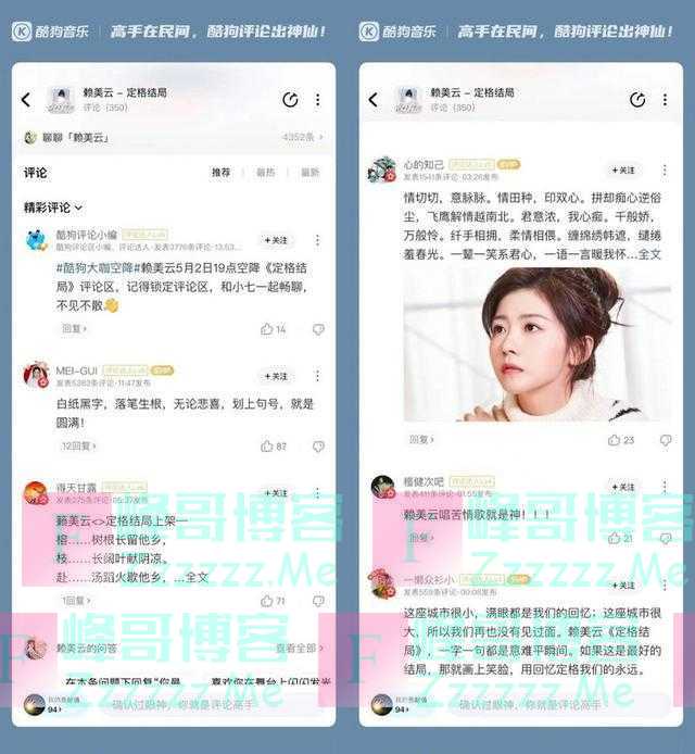 无论你是用声音去追逐自己梦想的音乐人,还是喜欢听不同曲风音乐的普通听众,都可以在酷狗音乐找到自己的“领地”。那么此刻,如果你也想到了那个最熟悉的陌生人,不妨上酷狗音乐搜索赖美云,在《定格结局》中找到你的独家记忆,小七还将在5月2日空降酷狗音乐《定格结局》歌曲评论区,与大家一起互动,敬请期待哦。