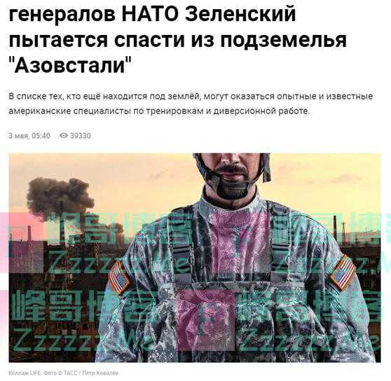 俄罗斯“生活”新闻网3日发表题为“无法逃脱:泽连斯基试图从亚速斯钢铁厂拯救哪些北约将军”的文章称,通过人道主义走廊离开亚速钢铁厂的一名钢厂前雇员称,乌克兰军方经常谈论地下室里有一名西方军队的高级将领的存在。他总是与泽连斯基保持联系。