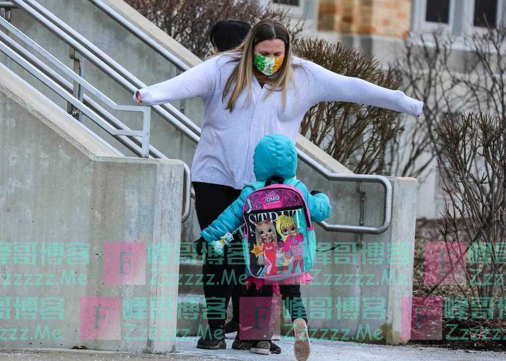 3月14日,在美国芝加哥,教师迎接一名到校上课的学生。当天,美国芝加哥公立学校取消在校必须佩戴口罩的规定。新华社发