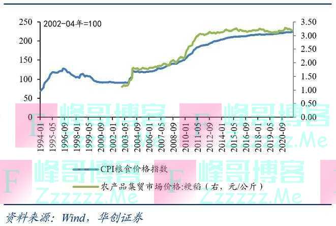 宏观层面看,玉米价格上涨的影响主要分析应体现在通胀层面,但影响有限。中国粮食消费结构以稻谷和小麦为主,CPI(居民消费价格指数)粮食价格基本与粳稻价格走势一致,而与大豆、玉米价格走势相关性不大,稻米价格不涨,CPI粮食就没有上涨风险。2009年至今,CPI粮食与国内稻谷、小麦、玉米和大豆价格的相关性为0.93、0.87、0.29、0.19。