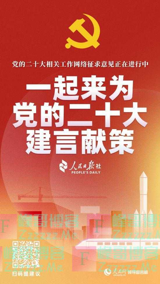 近期,党的二十大相关工作网络征求意见正在进行,人民日报推出“我为党的二十大建言献策”征集,各地网友积极参与,为党的二十大建言献策。欢迎扫码留言,期待您的声音。